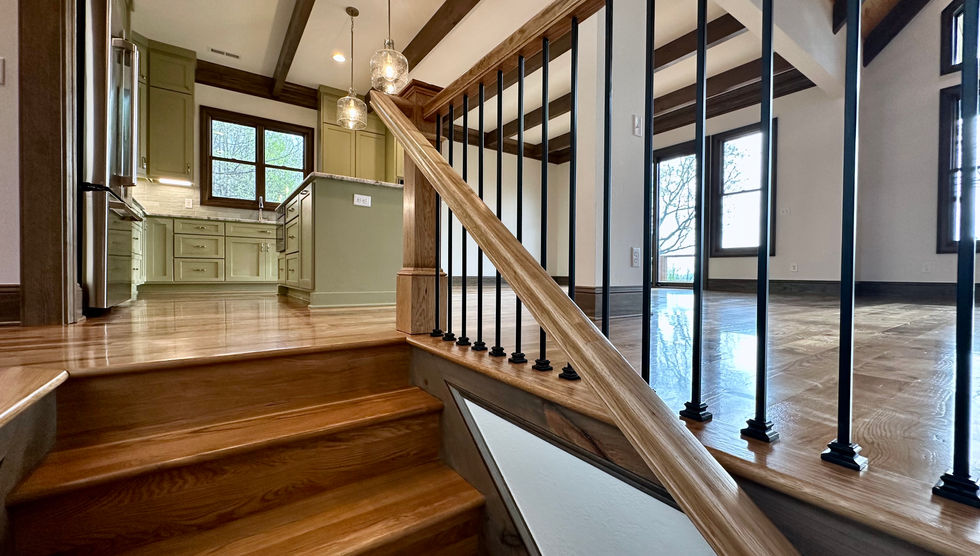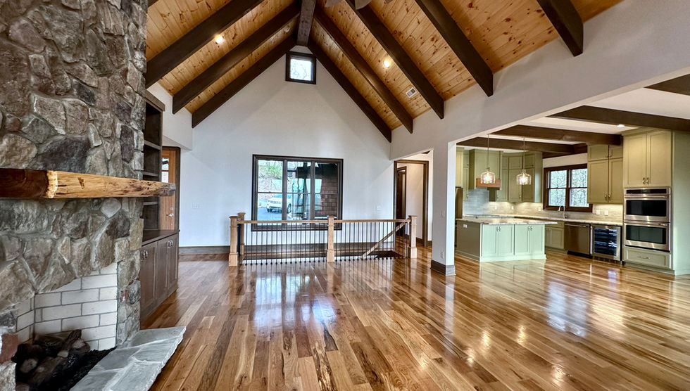 The ceiling transitions in this home help create both expansive and cozy living spaces. The vaulted ceiling accentuates the line through the heart of this home. Flowing from the foyer, through the great room, and extending out into the screen porch. Lowered ceilings in the kitchen and dining create cozy gathering places for day to day life.